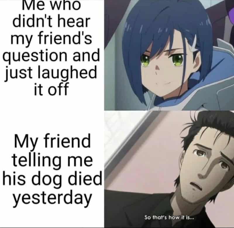 After scrolling through these anime memes, you were hopefully left in stitches, appreciating the spot-on humor and relatable content. You reminisced about their favorite anime moments, laughed at the exaggerated expressions, and felt a sense of belonging in the anime community. These gems brought to life the quirks and tropes of anime in a way that only true fans can understand.