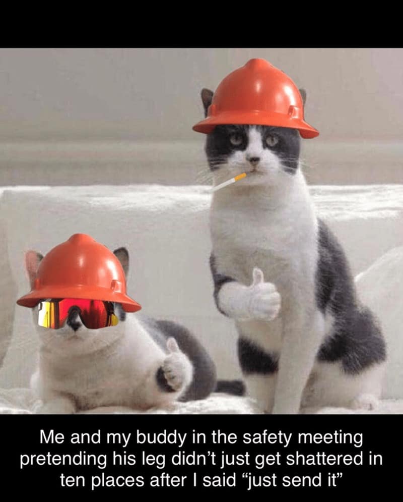 This collection of 32 construction memes is a tribute to everyone who’s ever donned a hard hat, picked up a hammer, or worked in the trades. These memes highlight the ups and downs of life on the job site, where the humor is as dry as the dust in the air and as sharp as the tools you use. Each meme captures the unique blend of challenges and rewards that come with working in construction, from the daily grind to the unexpected surprises that make the job memorable. Whether you're familiar with the long hours, the unpredictable weather, or the constant troubleshooting that defines the life of a tradesperson, these memes will resonate with you. They’re the perfect mix of funny construction jokes and relatable experiences that every construction worker can appreciate.