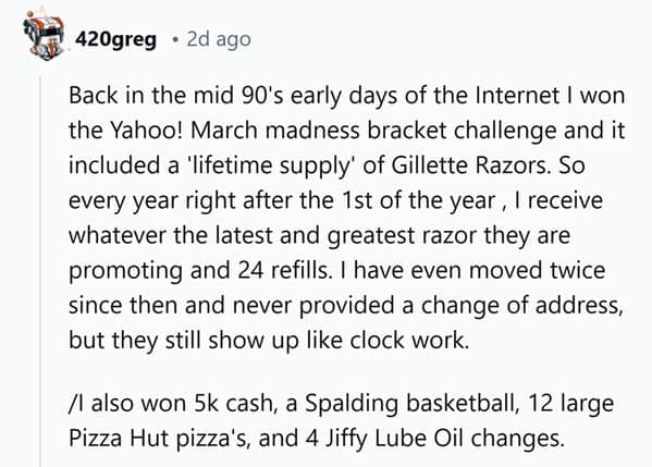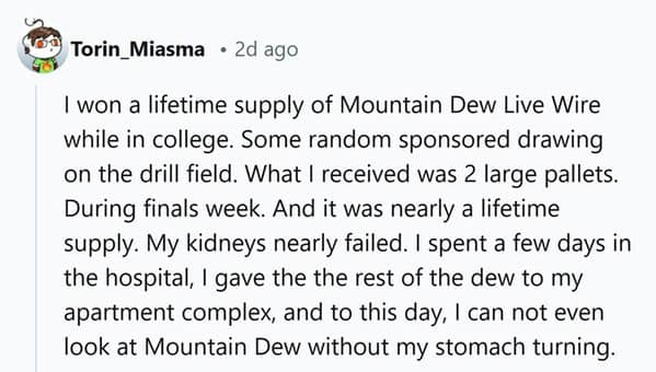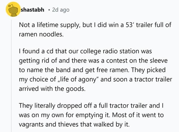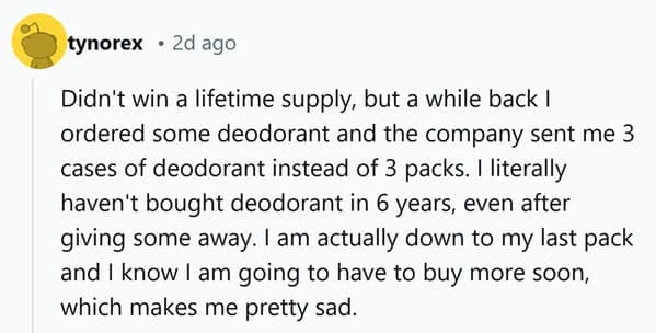 We’ve all dreamed about winning a lifetime supply of something—whether it’s our favorite snack, product, or even something a bit more unconventional. But what’s it really like to win such a prize? These 22 lifetime supply stories reveal the truth behind those seemingly amazing wins, with people sharing their experiences, both good and bad.