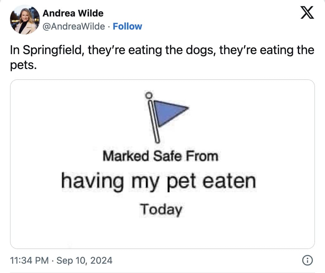 Also, no one is eating the pets, man.