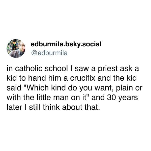After scrolling through these Catholic school memes, you’ve likely relived the awkwardness of school uniforms, prayers before exams, and that ever-present sense of Catholic guilt. You saw a collection of relatable memes that captured your experience—whether it was the over-the-top discipline, bizarre rules, or those ever-vigilant nuns. Hopefully, it was as nostalgic as it was funny.