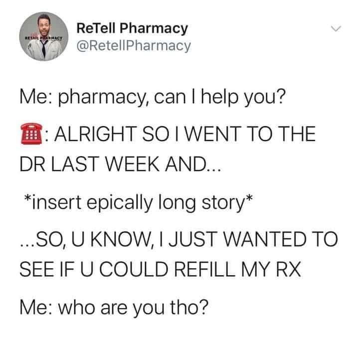 This collection of pharmacy memes is a hilarious glimpse into the universal struggles faced by pharmacists and customers alike. From the never-ending wait times to the awkward interactions at the pharmacy counter, these memes highlight the absurdity of the whole process. As you scroll through, you’ll find relatable jokes about mispronounced medication names, confusing insurance issues, and the eternal frustration of watching someone get served before you even though you’ve been waiting for what feels like days. These pharmacy memes blend humor with a dose of real-life frustration, capturing the moments that both pharmacists and customers know all too well. Whether you’re a pharmacist dealing with impatient customers or a customer dealing with complicated prescriptions, these memes offer a lighthearted way to laugh through the experience.