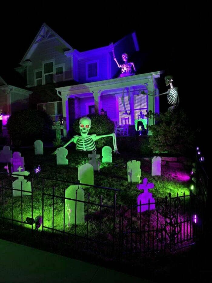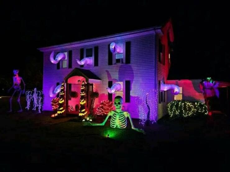 This collection of Halloween decorations showcases some of the most creative and over-the-top setups you’ll see this spooky season. From towering skeletons to intricately designed haunted house facades, these decorations prove that people are taking Halloween to a whole new level. As you scroll through, you’ll find everything from hilarious skeleton scenes to genuinely creepy yard displays that will give you both ideas and envy. These Halloween decorations are perfect for those who love to go all out for the holiday or just appreciate the creativity that others bring to their homes. Whether it’s funny, spooky, or just plain impressive, these decorations will get you in the Halloween spirit.