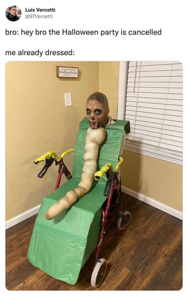 This collection of creative halloween costumes showcases people who took Halloween way more seriously than the rest of us. Whether it’s intricate DIY creations or costumes that are hilariously clever, these individuals have raised the bar for what it means to truly embrace spooky season. You’ll see costumes that play on pop culture, costumes with wordplay that will make you chuckle, and even costumes so detailed they could pass for professional designs. As you scroll through, you’ll realize that Halloween isn’t just about being spooky—it’s about being creative, pushing the boundaries, and maybe making the rest of us feel a little bit bad about our last-minute efforts. These photos prove that, with a little imagination (and maybe a lot of hot glue), you can turn any idea into a standout costume.