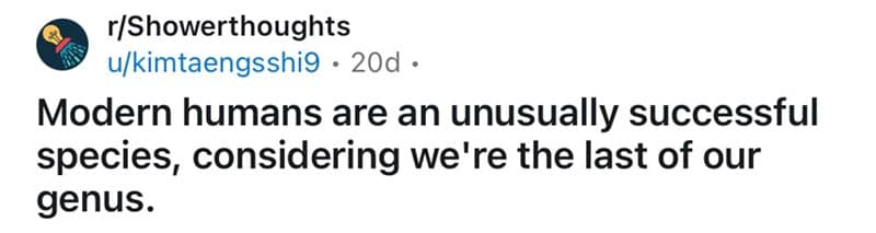If these shower thoughts had you going “hmmm,” there’s plenty more mind-bending humor waiting for you on Thunder Dungeon. From meme galleries that explore random internet facts to collections full of funny and clever observations, we’ve got tons of content to keep you entertained.