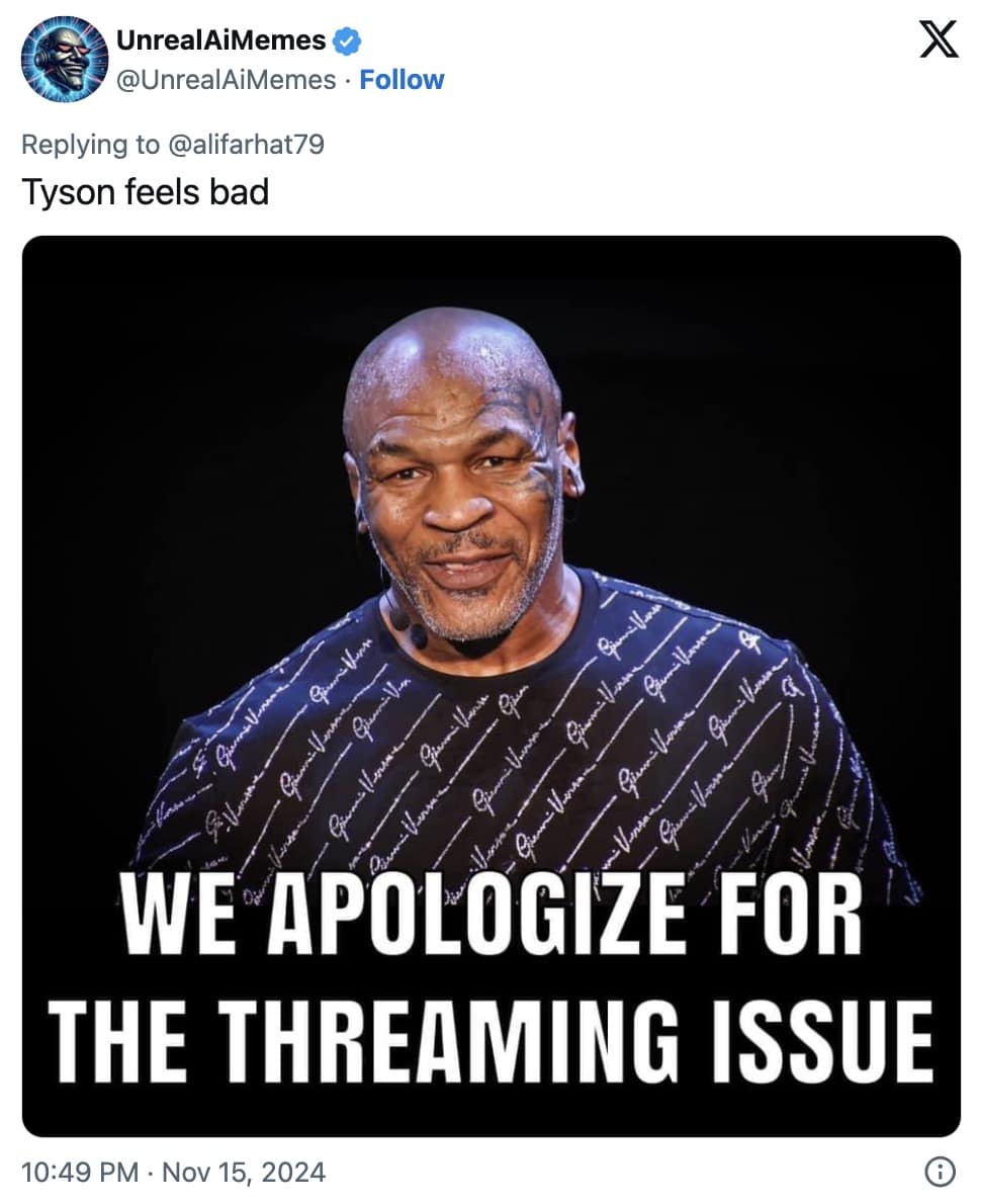 Every boxing enthusiast has that one fight they anticipate with bated breath, only to be left scratching their heads when reality falls short of expectations. This weekend’s clash between Jake Paul and Mike Tyson was supposed to be the fight of the century, blending the raw energy of a YouTube sensation with the legendary prowess of a boxing icon. Instead, what unfolded was a spectacle that left fans both bewildered and amused. In the aftermath, the internet sprang into action, transforming the disappointing fight into a goldmine for Mike Tyson memes and Jake Paul memes. These Jake Paul vs Mike Tyson memes became the perfect outlet for fans to express their sardonic humor and disbelief, turning a lackluster match with horrible Netflix streaming issues into a shared moment of online amusement.