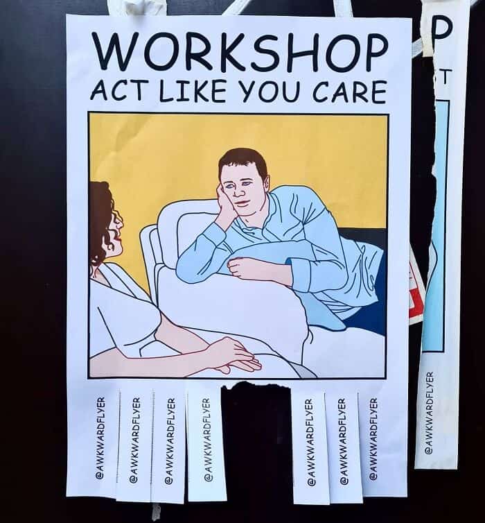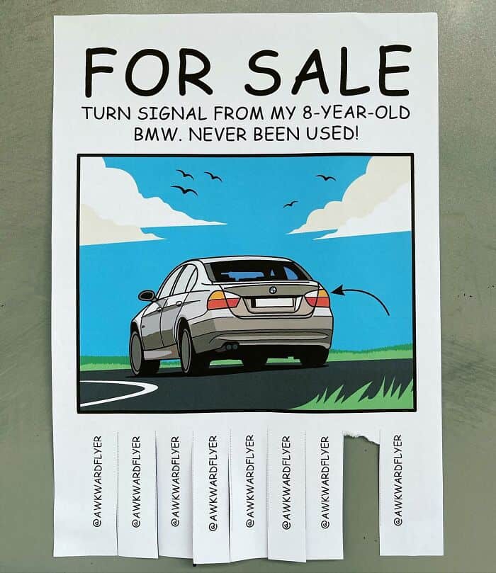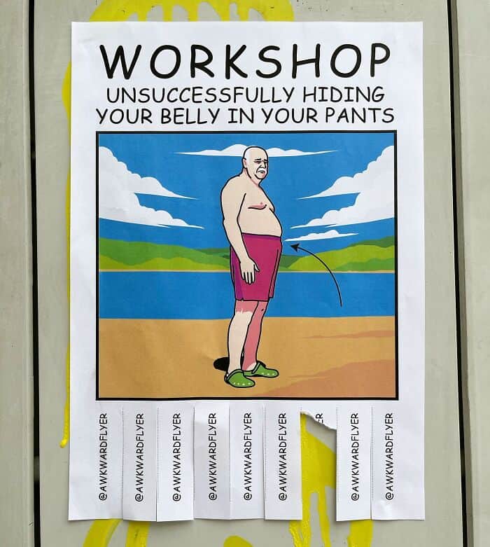 After tearing off these funny tear off flyers, you likely found yourself smirking at the clever humor and creative designs that Hang brings to each piece. The flyers captured the essence of what makes Hang’s work uniquely entertaining, turning a routine action into a moment of shared amusement.
