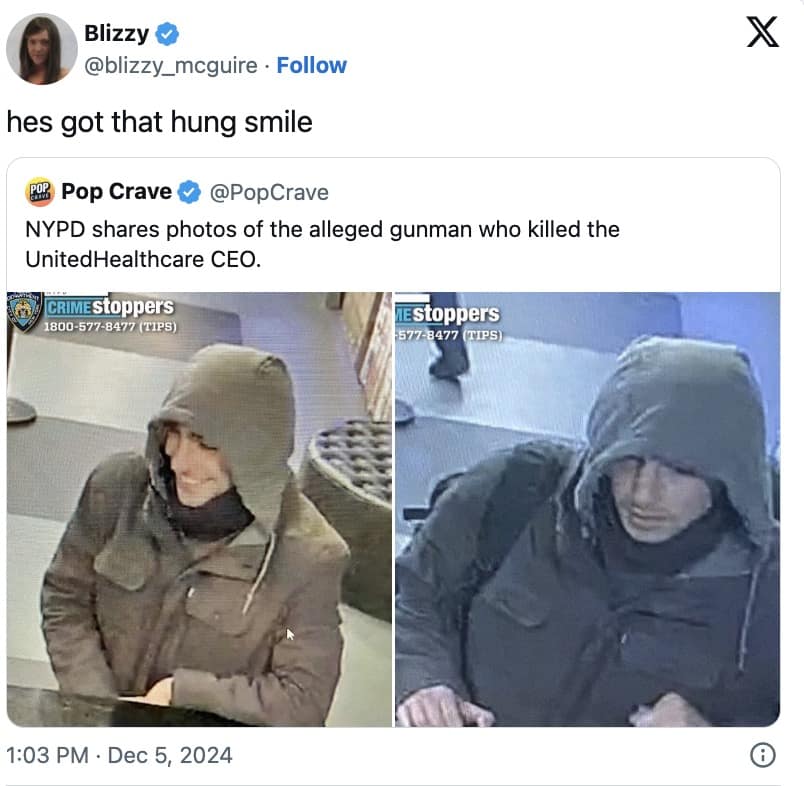 The internet has once again proven its uncanny ability to turn tragedy into a viral sensation. This time, the subject of their obsession is the alleged UHC CEO shooter. After the NYPD released the suspect's phoyo, social media platforms were flooded with comments about his striking looks. From "hot felon" comparisons to thirsty tweets, it seems the public has a newfound appreciation for criminal aesthetics in the form of UHC CEO shooter memes.