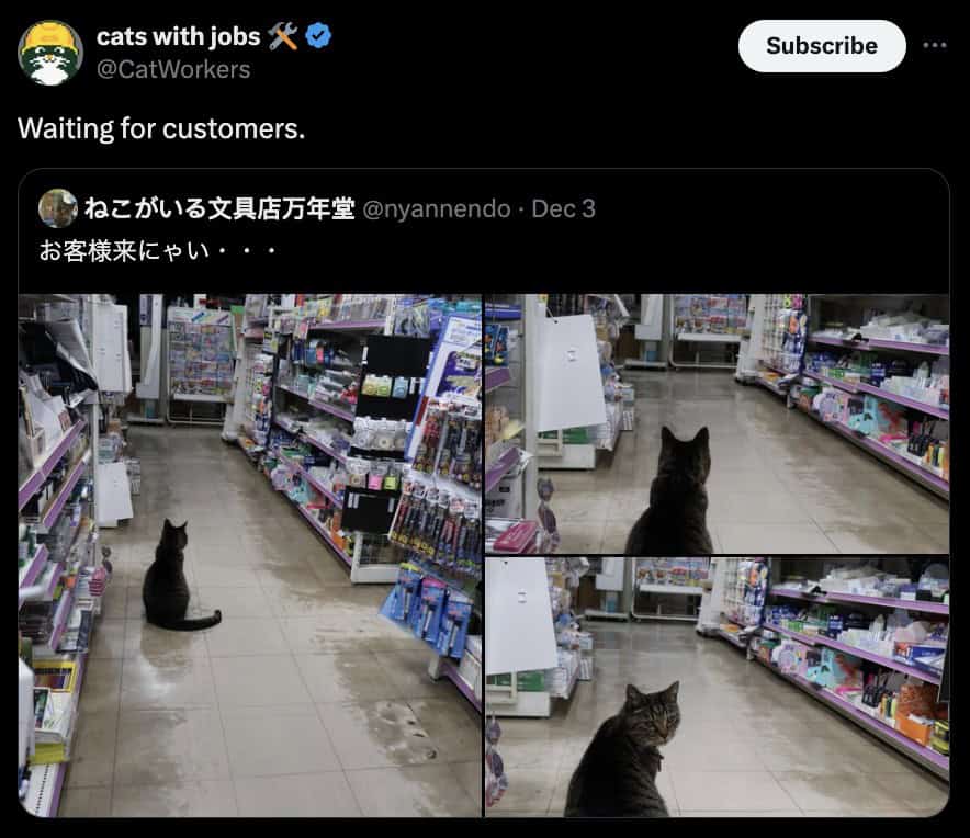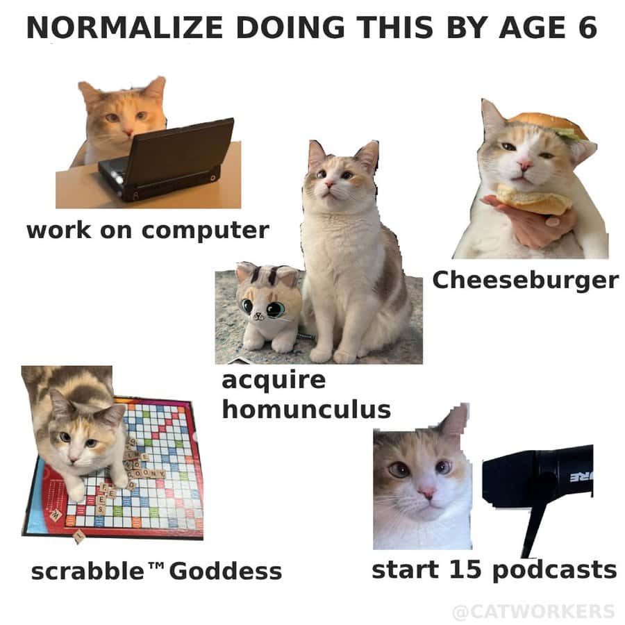 Considering that cats spend most of their day napping, it’s odd how cat memes give the impression that felines are highly productive creatures. Perhaps we’ve projected our own desire to shirk responsibility onto these whiskered loafs. Regardless, watching them appear hard at work, as if emailing spreadsheets or negotiating quarterly budgets, is strangely comforting. The notion that a cat might be handling a conference call better than you ever could brings a wry smile.