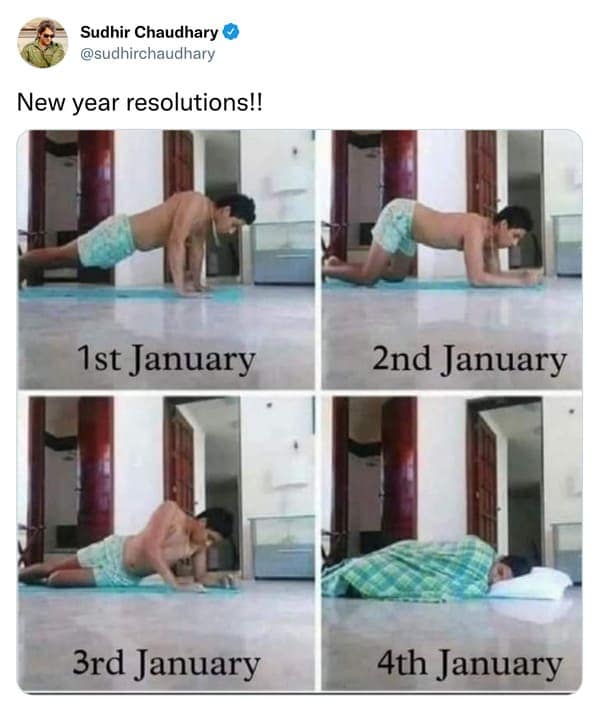 Picture a timeline clogged with resolution fails, each tweet sharing the irony of making promises few intend to honor. These images embrace holiday goal humor by poking at the annual optimism we muster, no matter how many times it’s disappointed us. Some posts highlight how quickly a gym membership or diet plan transforms into a mere footnote in our monthly credit card statements. Others craft festive motivational quotes with a twist, reminding us that the excitement of a fresh calendar can fade faster than leftover party snacks. Throughout these comedic glimpses, you’ll see the universal cycle: hype for a new start, immediate reality-check, and resignation that life continues, with or without those big plans.