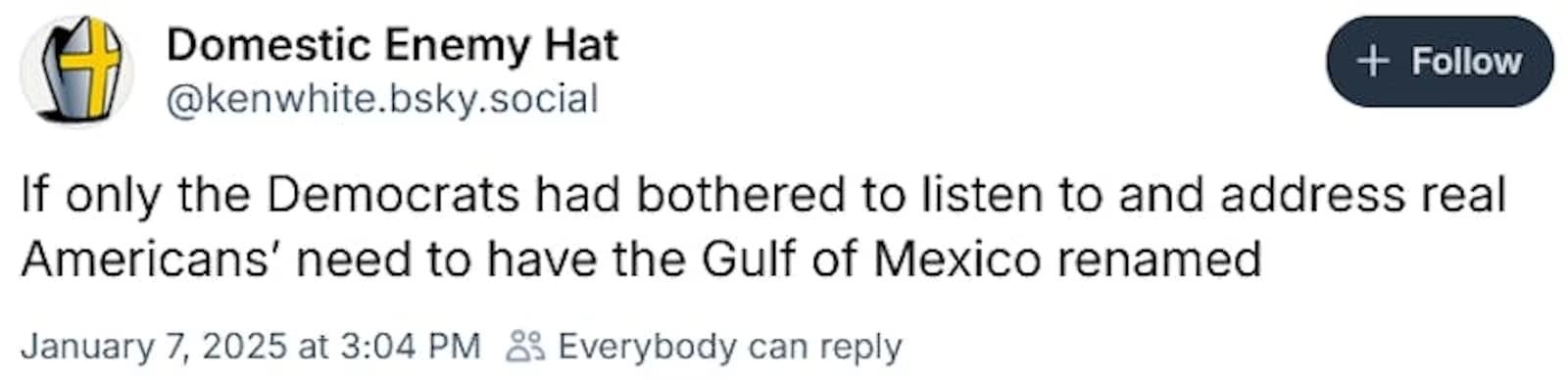 Gulf of America = The distance between Trump’s ears.