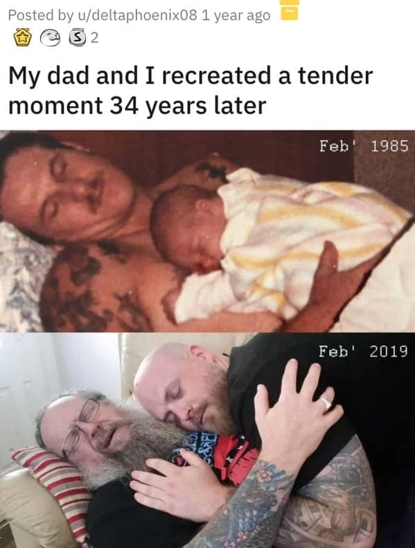 My dad and brother recreated this photo 26 years later.