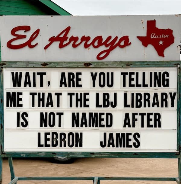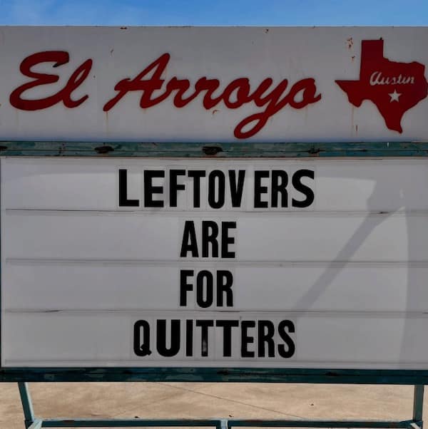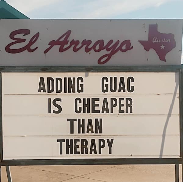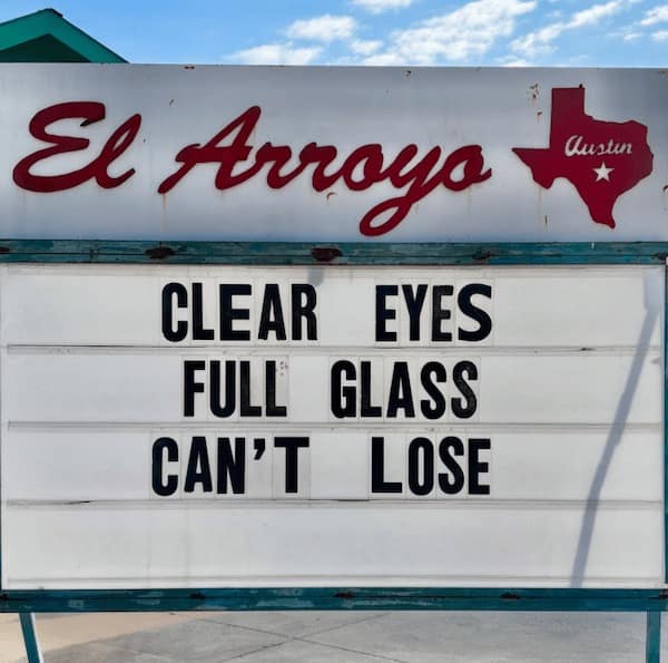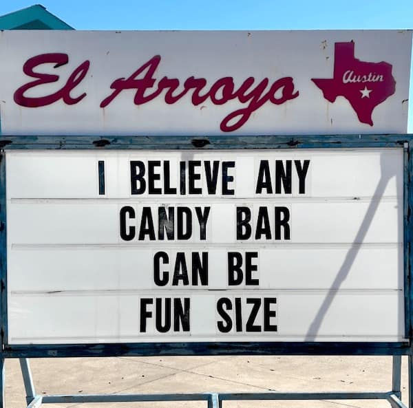 You just giggled your way through funny El Arroyo signs that were funnier than anything you’ve ever come up with. You saw everything from witty one-liners to full-on roasts, all delivered with the kind of dry humor that only El Arroyo can pull off. You probably screenshot at least three of them to send to your group chat, and you might even be planning a trip to Austin just to see these signs in person.
