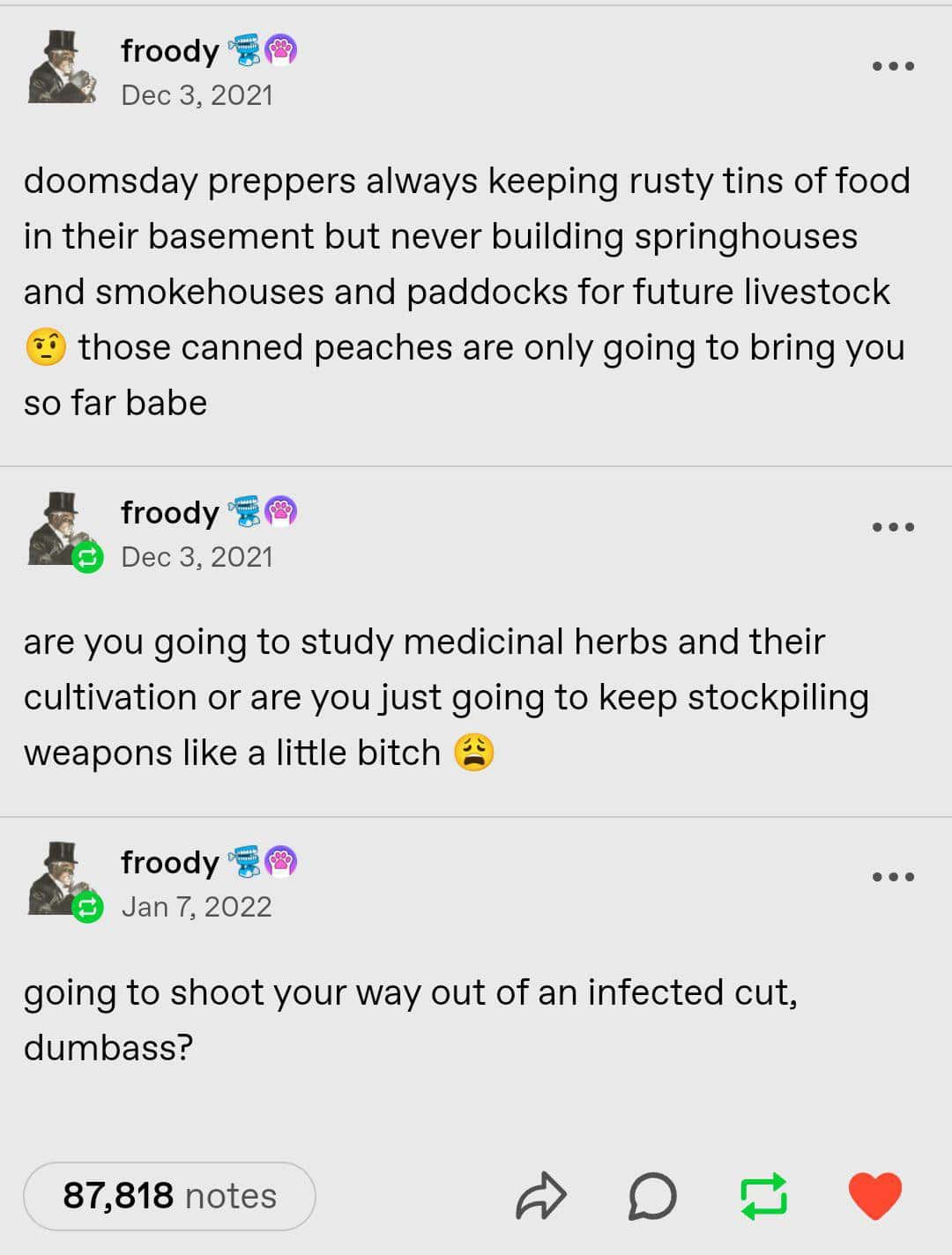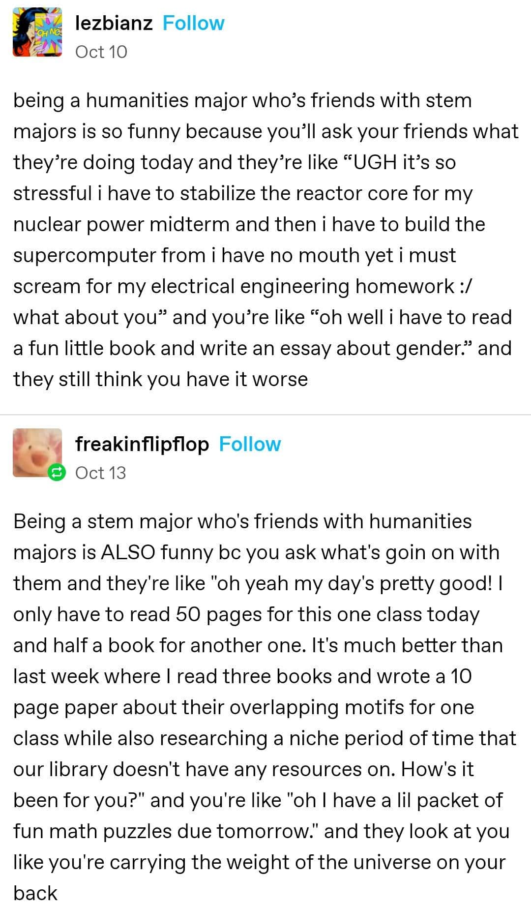 Within these 40 images, you’ll witness a broad spectrum of comedic oddities that cement Tumblr’s reputation for forging its own path in the meme landscape. Some revolve around reblog chains that escalate from mundane observations to grand philosophical leaps—yes, we can glean cosmic life lessons from a single grilled cheese post if we’re feeling introspective enough. Others exploit the site’s endless capacity for witty commentary, layering comedic text on top of random stock images, resulting in a strangely coherent tapestry of Tumblr humor. Despite the occasional eye-roll moment, you can’t deny that these best Tumblr posts reflect a deeply creative spirit, often cutting deeper than a typical funny Tumblr memes collection might. Each piece urges you to join in on the pseudo-academic banter or roll your eyes at a sassy retort, proving that comedic gold can thrive wherever subcultures congregate. As you dive in, prepare for your brain to bounce between mild confusion and surprising insight, because Tumblr’s flair for the bizarre remains unmatched.