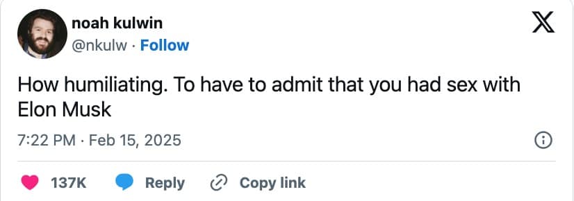 One of the funniest takes? A meme showing a crying woman Photoshopped onto a Who Wants to Be a Millionaire contestant, with the text, “So you’re saying sleeping with Elon Musk was NOT the million-dollar idea?”