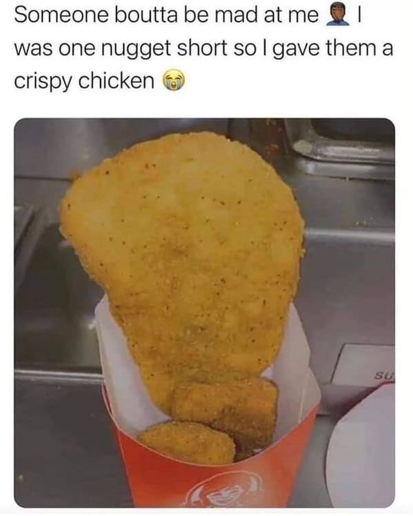 Among these 34 snapshots, you’ll find every angle of nugget-based amusement: from people waxing poetic about crispy bites to comedic overindulgence that pushes the boundaries of self-control. Each image highlights that sweet spot between convenience food addiction and self-deprecating acceptance. Some revolve around fast food memes, reflecting the fervor that can erupt when you discover your fridge is nugget-less, or your favorite chain got your dipping sauce order wrong. Others delve into cravings humor, capturing the borderline desperation that surfaces when you’re running on empty at bizarre hours, convinced that only a 20-pack can calm your restless mind.