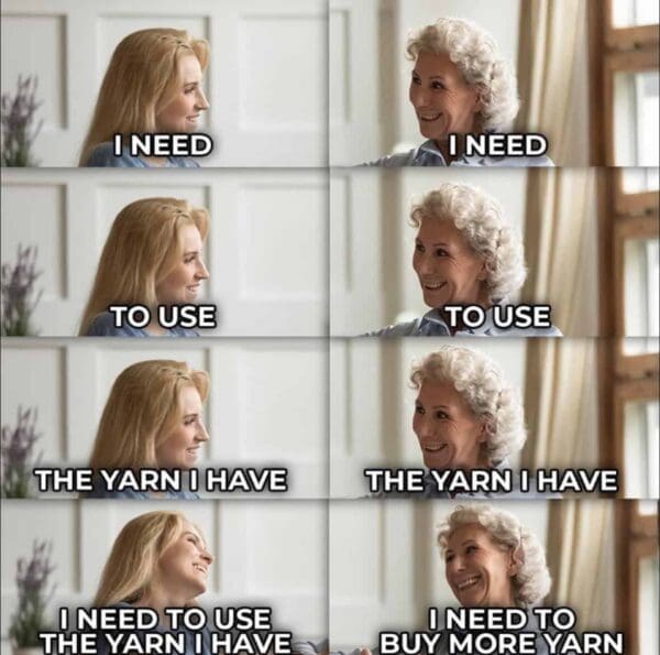 You browsed through a cluster of pictures that tapped into the real pains and delights of yarn-based crafting. The funny crochet memes displayed a healthy dose of knitting memes as well, reinforcing how these two crafts share many frustrations and joys. Over and over, yarn jokes emerged to highlight the universal trait of never having “enough” materials.