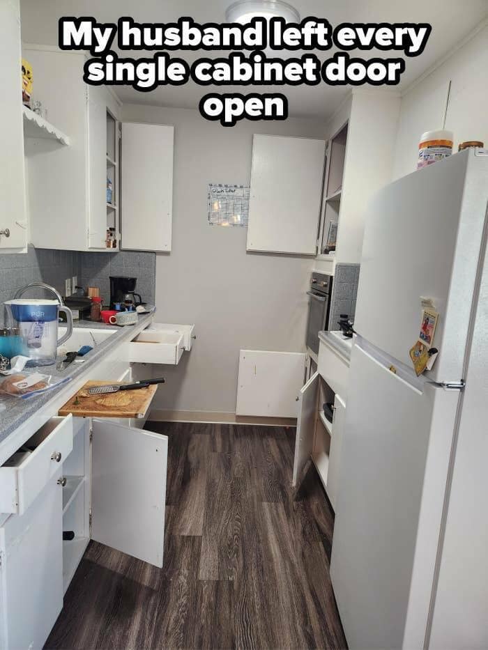 In many of these frames, the daily chaos of married life merges seamlessly with comedic banter. It’s no surprise that people who enjoy lighthearted couples jokes tend to hoard these images for future reference, whether it’s commiserating over unclosed kitchen cabinets or the endless pile of laundry that spontaneously multiplies. And while some folks may prefer heartfelt tips on improving their shared living spaces, these pictures lean more toward the hilarious side of family life. That’s the thrill of relationship humor: finding the silly genius in petty squabbles over unopened mail and stacks of grocery receipts. It’s a snapshot of real life, captured with both affection and gentle exasperation, reminding us that no matter how maddening our partner’s quirks might be, love manages to keep things afloat.
