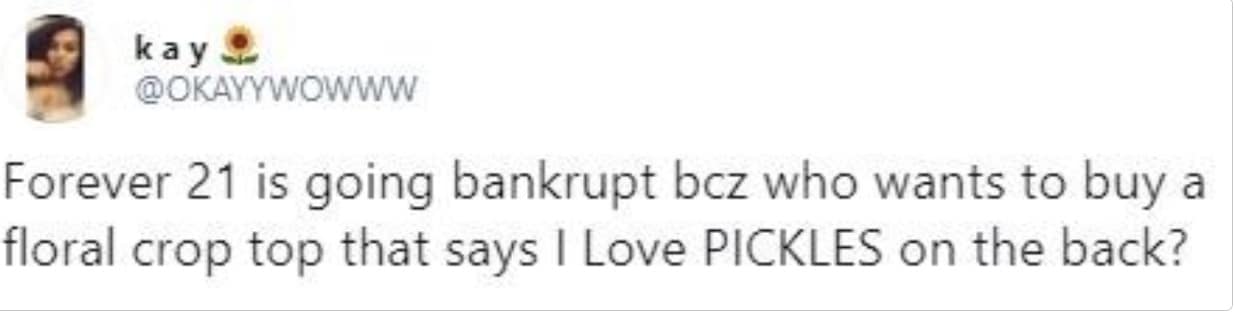 This latest bankruptcy filing feels like the final nail in the coffin, and Forever 21 bankruptcy memes are treating it as such. There’s a shared sense of nostalgia, sure, but mostly, people are poking fun at the fact that literally everyone saw this coming—except, apparently, Forever 21.