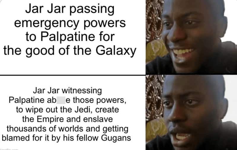 After traversing this comedic cosmos of star wars memes, you'll have emerged with a newfound appreciation for the humor hidden beneath the star-studded surface of Star Wars. It was a journey that transformed lightsabers into punchlines and droids into stand-up comedians, proving that even in a galaxy with a Death Star, laughter is the ultimate force.