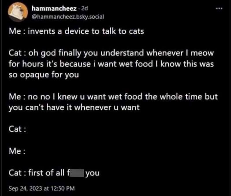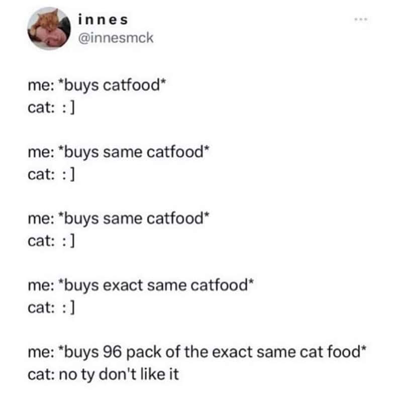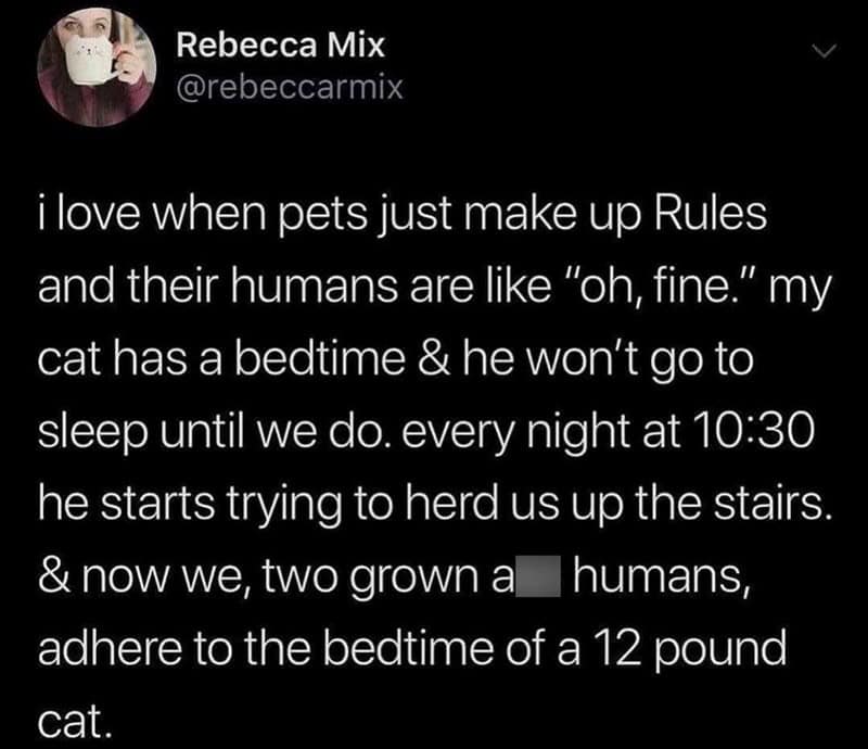 My cat has an incredible talent—knocking things off tables at precisely 3 am. Just when I’m drifting off into dreamland, I hear that unmistakable crash and immediately know it’s my furry overlord reminding me who's boss. If you have a cat, you get it, and these cat tweets capture exactly this kind of feline-induced chaos and comedy.