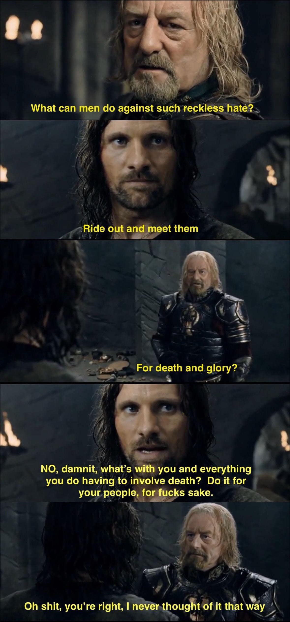Even Gollum earns new life as the poster child for subscription fatigue, clutching streaming passwords like precious relics. Each of these LoTR memes relies on instant recognizability; sweeping landscapes and epic stares deliver universal setups for everyday grievances.