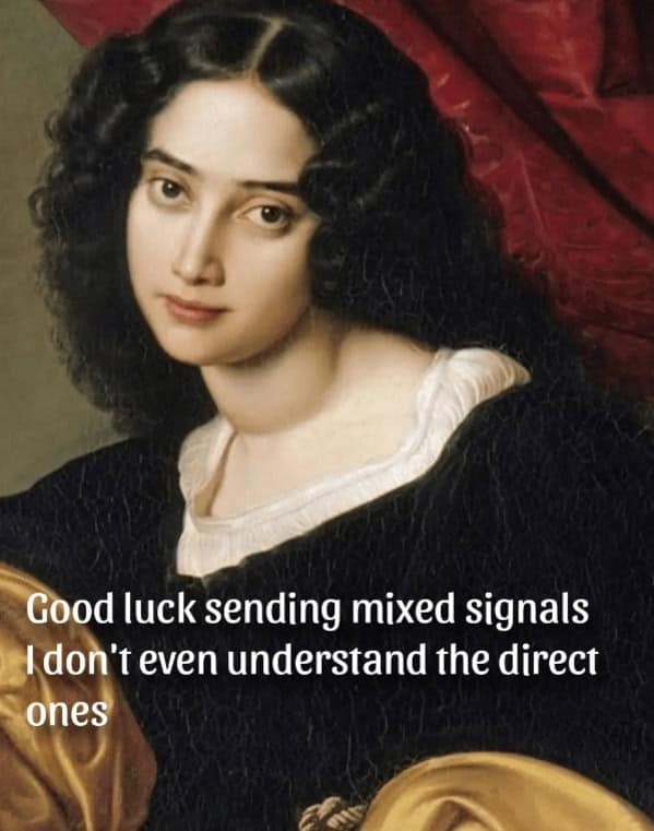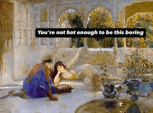 After browsing these classical art memes, you found yourself oddly comforted by how accurately these ancient artworks captured your everyday woes. Each meme showcased a familiar frustration or embarrassing moment, subtly reminding you that your life isn’t uniquely terrible—everyone’s always been slightly miserable. Whether it was the humorous takes on social anxiety or pointed mockery of life's trivial annoyances, you laughed knowingly, assured in your shared suffering. Art, you realized, is indeed timeless—just not always elegantly so.