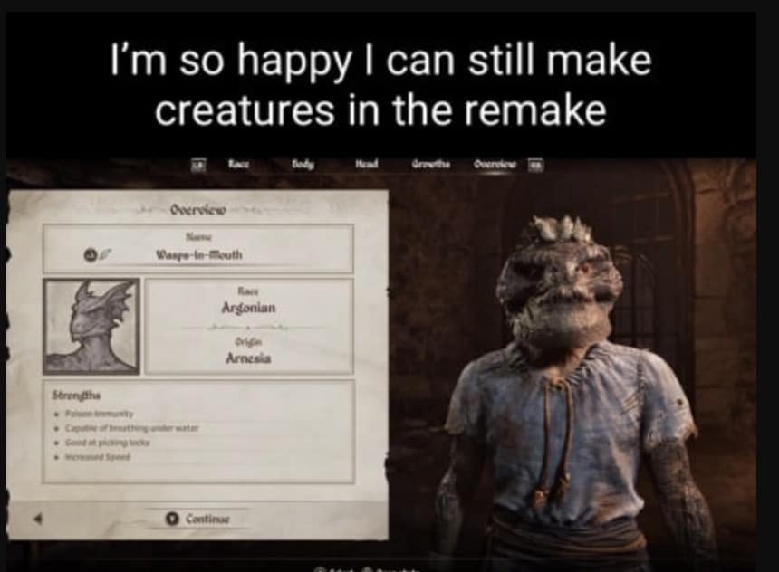 Every gamer’s first rite of passage is spending four hours sculpting a face only a Daedric prince could love. Unreal Engine may have buffed the pixels, but the soul-warping sliders remain gloriously cursed. Cue another wave of Oblivion Remastered memes featuring protagonists whose chins could cut glass and eyes permanently set to “Who just cast Charm Person?” Meanwhile, Oblivion Remake memes ask the important question: if you don’t exit the sewers looking like a fever dream Picasso discarded, did you even replay Oblivion?