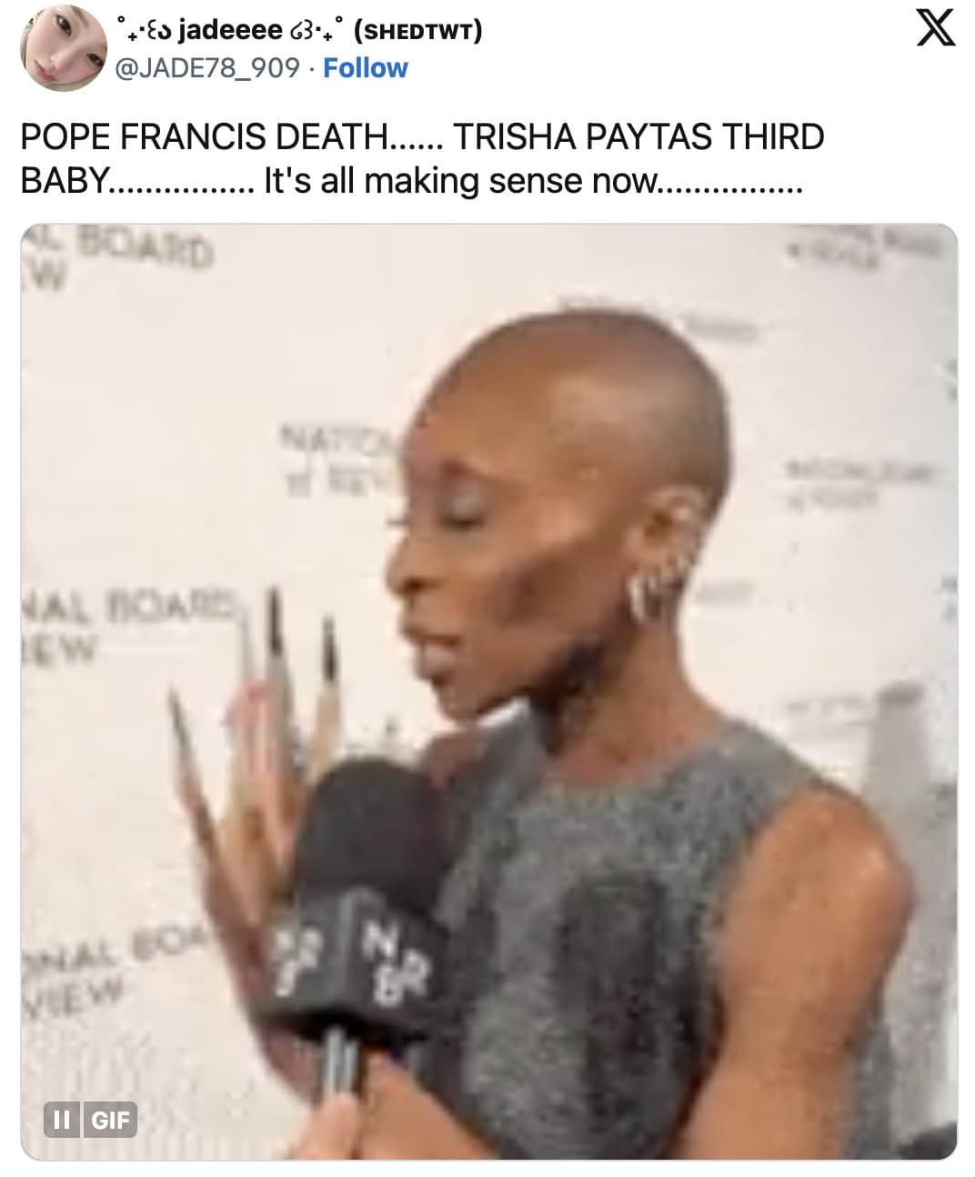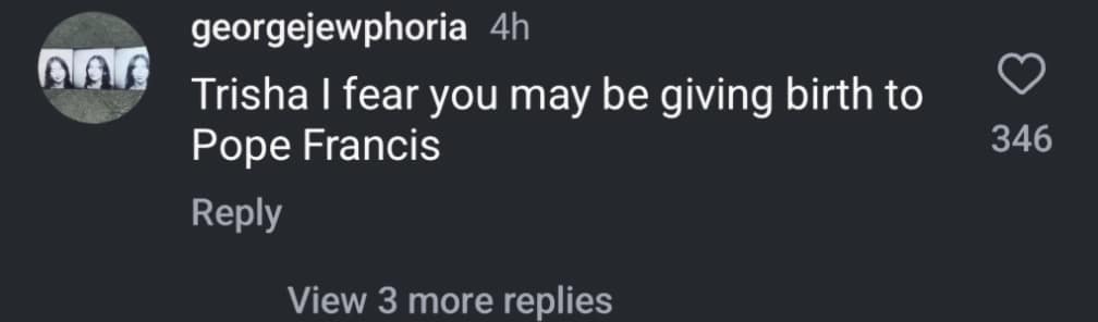 Let’s recap this cursed timeline, shall we? When Queen Elizabeth died, Trisha announced her pregnancy like some kind of morbid press release. Then, King Charles got mysteriously ill right around the time Trisha gave birth—because of course he did. And now, Pope Francis has left this mortal plane just as Trisha’s womb activates yet again. At this point, we’re one royal/religious figure away from Trisha’s baby being crowned the new Supreme Leader of Earth.