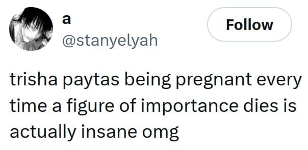 Look, we all know this is just a ridiculous coincidence. Trisha isn’t actually causing world leaders to drop dead by getting knocked up (probably). But that’s the beauty of the internet—we’ll take any excuse to turn something completely unrelated into a meme-worthy phenomenon. The Trisha Paytas pregnancy memes thrive because they’re absurd, unexpected, and just slightly unsettling.