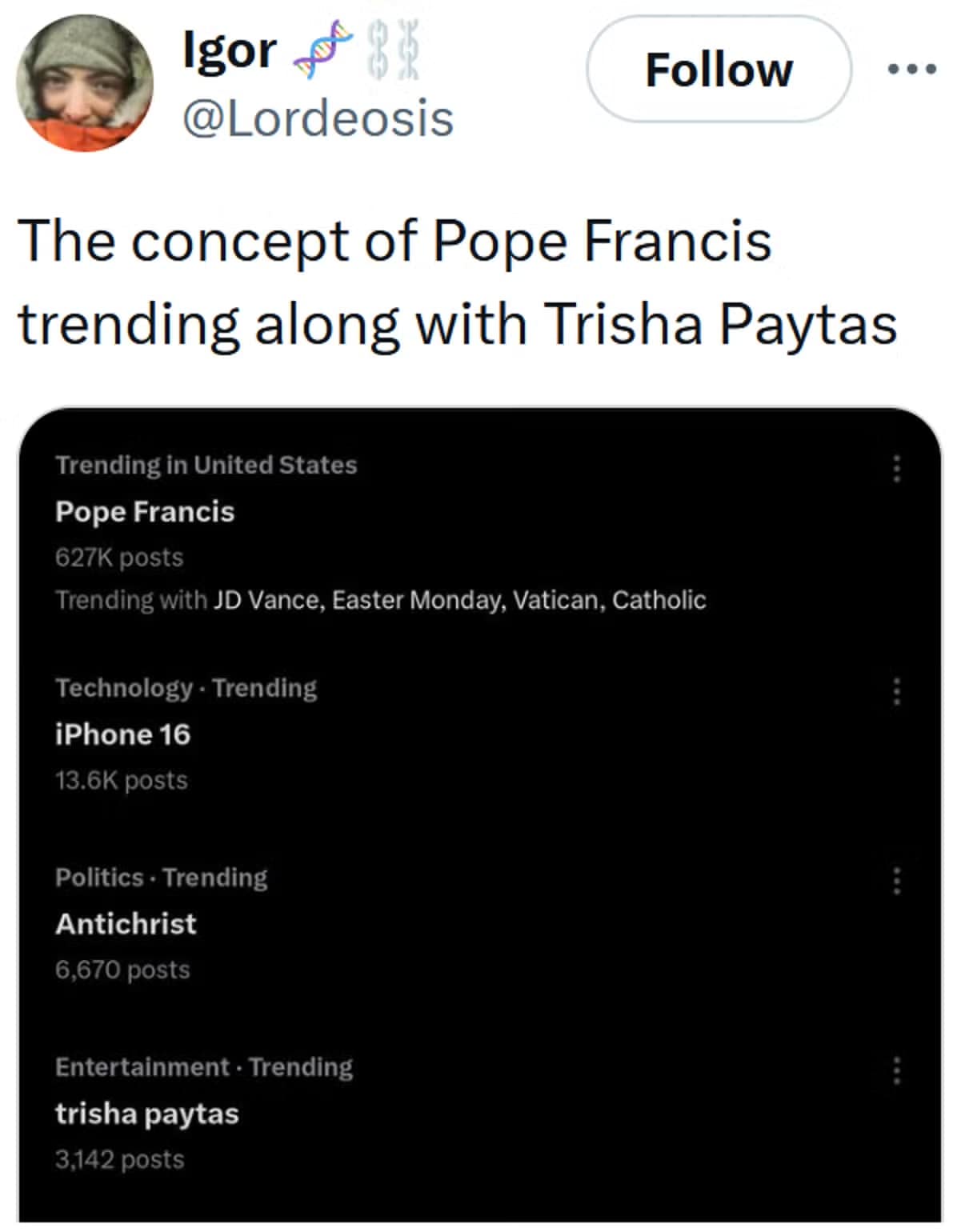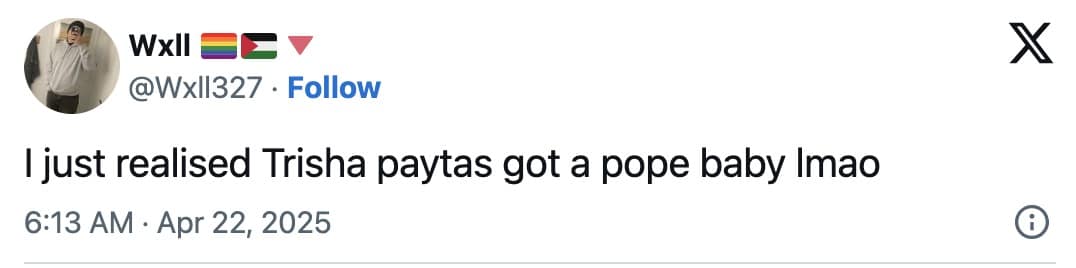 Is the Pope being reincarnated as Trisha’s next child? Is this baby the Antichrist? Or is Trisha just the universe’s way of reminding us that nothing makes sense anymore? Either way, the Trisha Paytas Pope memes are gold, and we’re all just clowns in this cosmic circus.