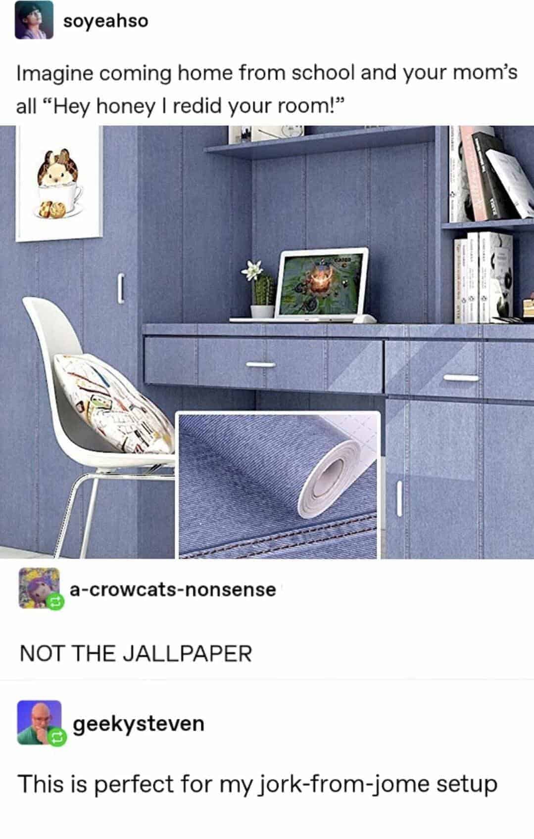 Our weekly harvest begins with a screenshot of a fandom mashup so unexpected it practically invents a new genre—proving Tumblr memes still break the comedic sound barrier. Scroll down to a pun‑laden textpost riffing on historical fanfiction, embodying Tumblr humor that can’t resist merging Shakespeare with space operas. We sprinkle in funny Tumblr textposts where strangers spiral into philosophical debates about soup ethics, all captured in vibrant block‑quotes. One standout shows a user live‑blogging their cat’s dramatic confrontation with a cucumber, complete with audience commentary from the reblog peanut gallery. Another gem delivers relatable chaos as someone attempts to microwave tea in a metal mug—cue the collective virtual facepalm. Each post balances razor‑sharp wit with enough absurdity to keep your eyebrows permanently raised. Together they illustrate why this platform remains the internet’s chaotic neutral: a place where brilliant nonsense thrives alongside heartfelt epiphanies.