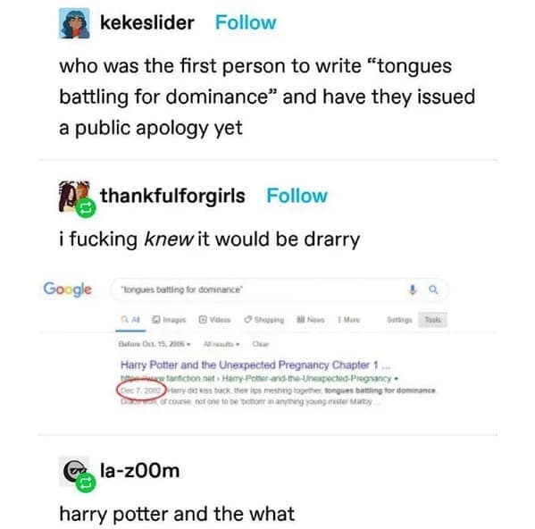 Our weekly harvest begins with a screenshot of a fandom mashup so unexpected it practically invents a new genre—proving Tumblr memes still break the comedic sound barrier. Scroll down to a pun‑laden textpost riffing on historical fanfiction, embodying Tumblr humor that can’t resist merging Shakespeare with space operas. We sprinkle in funny Tumblr textposts where strangers spiral into philosophical debates about soup ethics, all captured in vibrant block‑quotes. One standout shows a user live‑blogging their cat’s dramatic confrontation with a cucumber, complete with audience commentary from the reblog peanut gallery. Another gem delivers relatable chaos as someone attempts to microwave tea in a metal mug—cue the collective virtual facepalm. Each post balances razor‑sharp wit with enough absurdity to keep your eyebrows permanently raised. Together they illustrate why this platform remains the internet’s chaotic neutral: a place where brilliant nonsense thrives alongside heartfelt epiphanies.