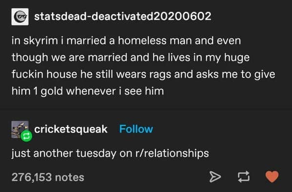 The funny Tumblr posts featured here represent some of the funniest and most iconic moments in Tumblr history. Each selection perfectly showcases the bizarre humor, random musings, and brilliantly absurd observations that made Tumblr legendary. From witty, text-based exchanges to strangely insightful commentary on mundane life, these posts capture the eccentric charm of early internet culture. Whether it's hilariously relatable life moments, exaggerated storytelling, or mind-bendingly odd scenarios, each of these funny tumblr posts offers a nostalgic glimpse into the comedic genius that thrived on Tumblr’s delightfully chaotic platform.