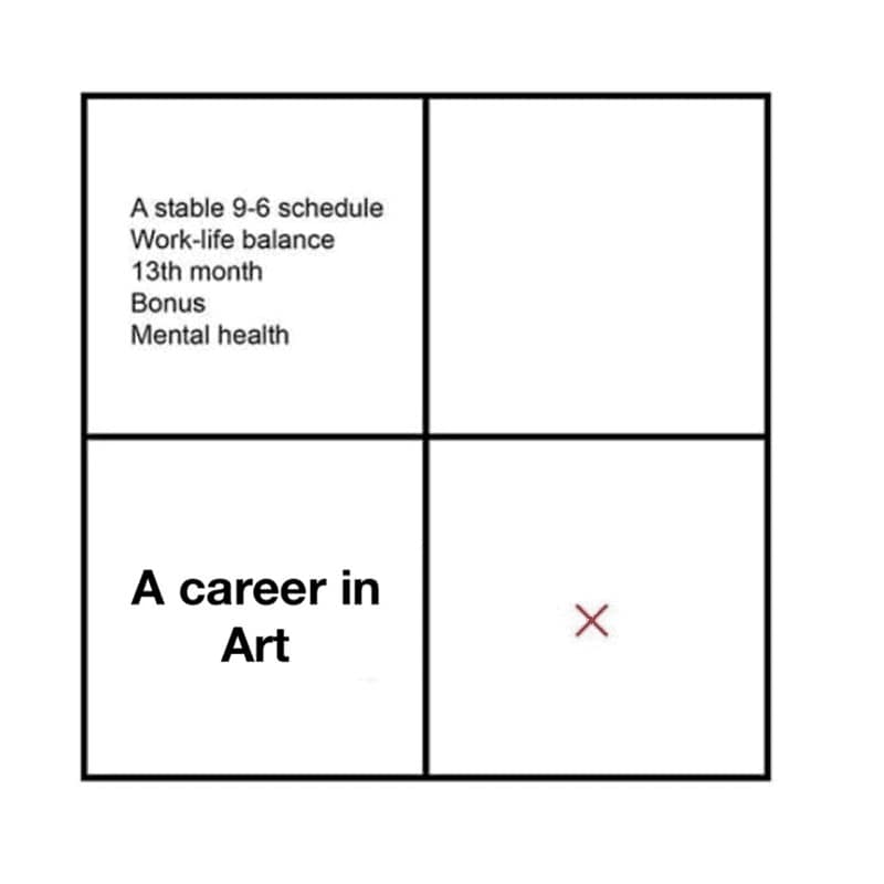 By the end of these memes, you probably found yourself laughing knowingly (and maybe crying slightly). The struggle of art school was laid bare in a painfully funny way, reminding you that at least you're not alone in your artistic despair.