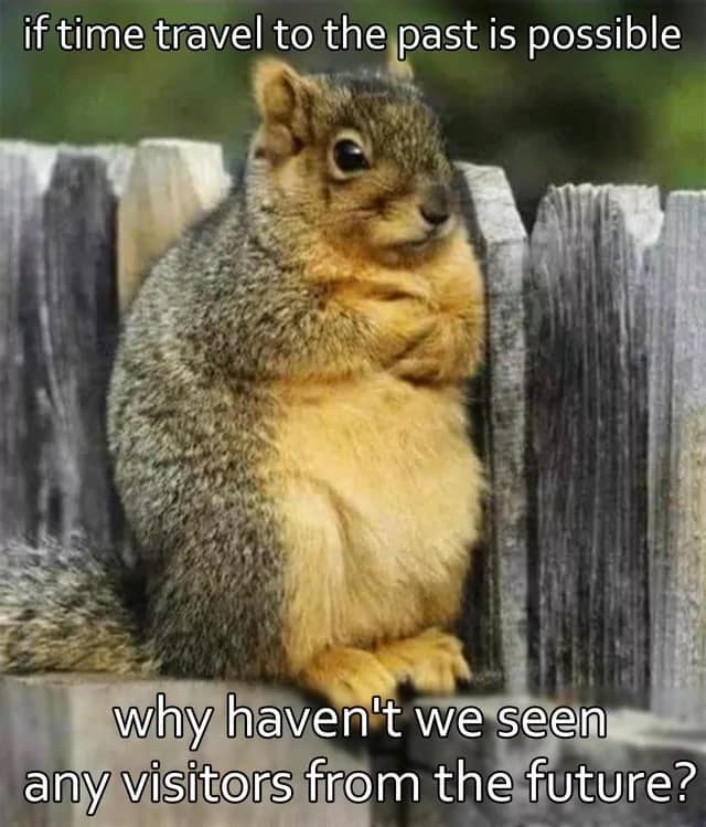 Dive into 30 amusing time travel memes featuring hilarious temporal paradoxes, sci-fi jokes, and witty timeline humor. These memes brilliantly highlight the potential chaos and absurd scenarios created by meddling with past and future events. From comically relatable regrets to absurdly specific historical interventions, each meme offers humorous insights into the nonsensical yet fascinating world of time travel.