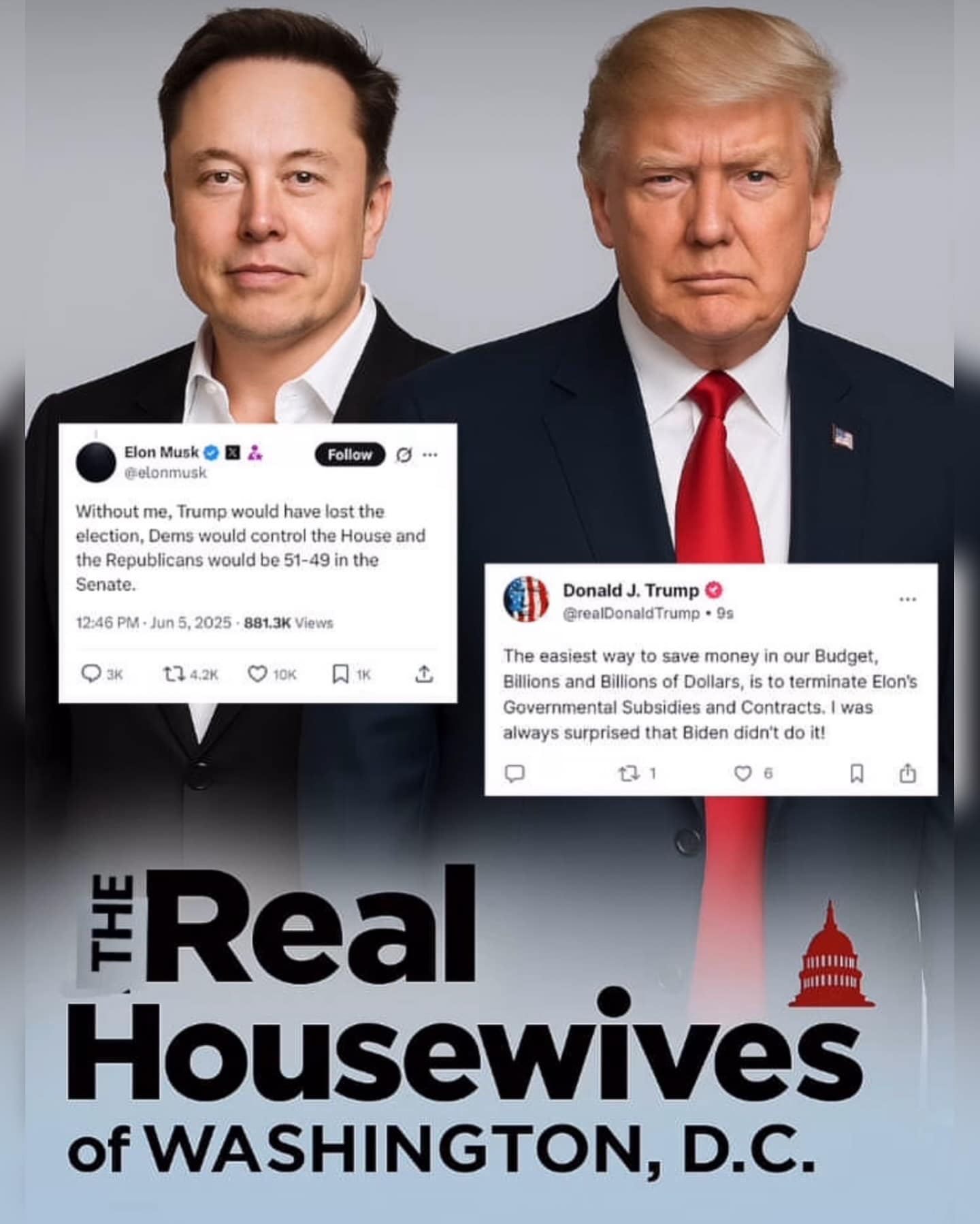 It finally happened, folks: America’s favorite billionaire bromance has officially crashed and burned. Elon Musk and Donald Trump, once a power couple for the ages, have entered the "messy divorce" stage, and the internet is here for it. Over the past 24 hours, the two titans of tantrums have been trading blows online, leading to a glorious flood of Musk Trump Feud memes. Who needs reality TV when you've got billionaires publicly arguing like angry exes?