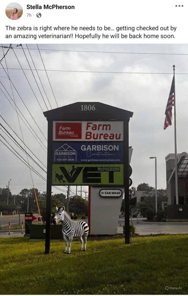 Drivers on I-24 nearly spilled iced coffee when Ed galloped past like a four-legged getaway car. Deputies shut lanes, but meme-lords opened Photoshop. Soon, Ed the Zebra memes featured fake traffic reports—“Expect minor delays: rogue equine practicing for NASCAR.” Somewhere, a State Farm agent quietly updated the “acts of zebra” clause. A glut of local businesses also featured Ed in their social ads in hilarious ways