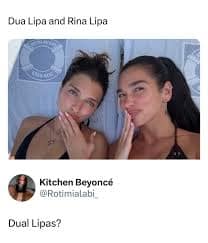 dual lipa memes, Dua Lipa memes, celebrity twin memes, sibling look‑alike memes, pun memes, photo reaction memes, viral memes, funny pop star memes, internet pun culture, duo lipa memes, rina lipa memes