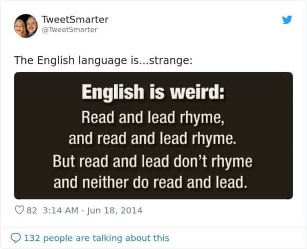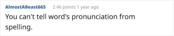 Learning English is like signing up for a lifetime of confusion and weirdness. The rules make sense—until they don’t. “Read” and “read” are pronounced differently, but spelled the same. “Colonel” sounds nothing like it looks. Non-native speakers know: English is basically a prank the British played on the rest of the world. These anecdotes and memes showcase just how bizarre, illogical, and, frankly, exhausting it is to try and speak English like a local. If you’re fluent, you’ve probably just given up and started nodding politely.
