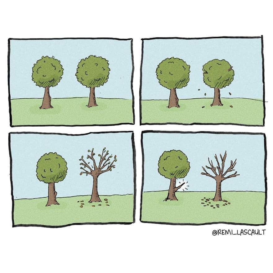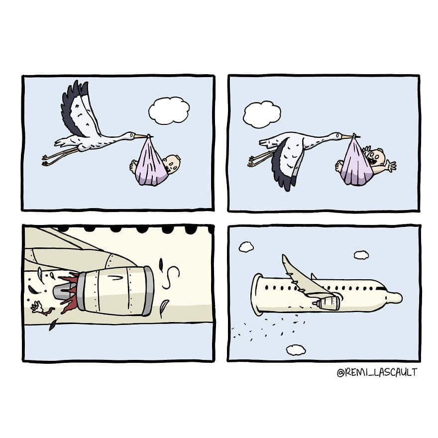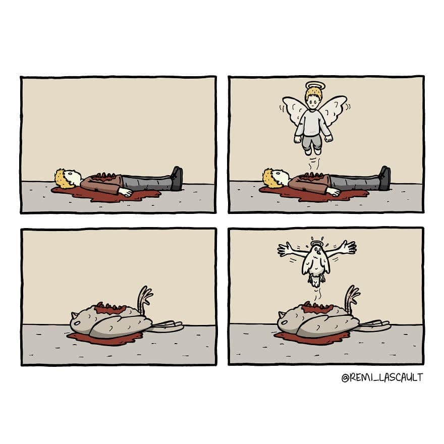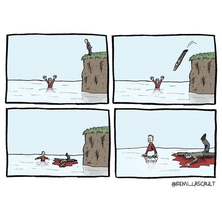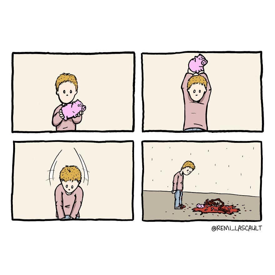If your humor is darker than the coffee you pretend to enjoy every morning, Rémi Lascault’s hilariously twisted comics are just your speed. These 38 deeply disturbing yet oddly relatable comics will scratch that sinister itch you've been hiding. Whether you're laughing quietly to yourself or sharing them with a friend equally corrupted, these dark twisted comics are guaranteed to validate your delightfully warped sense of humor. Proceed at your own risk—morals not included.