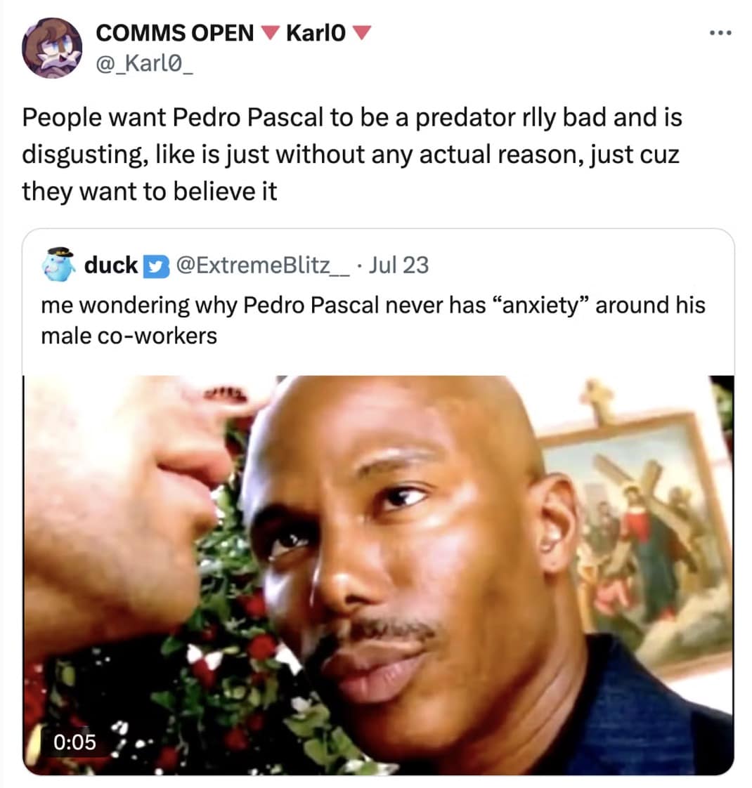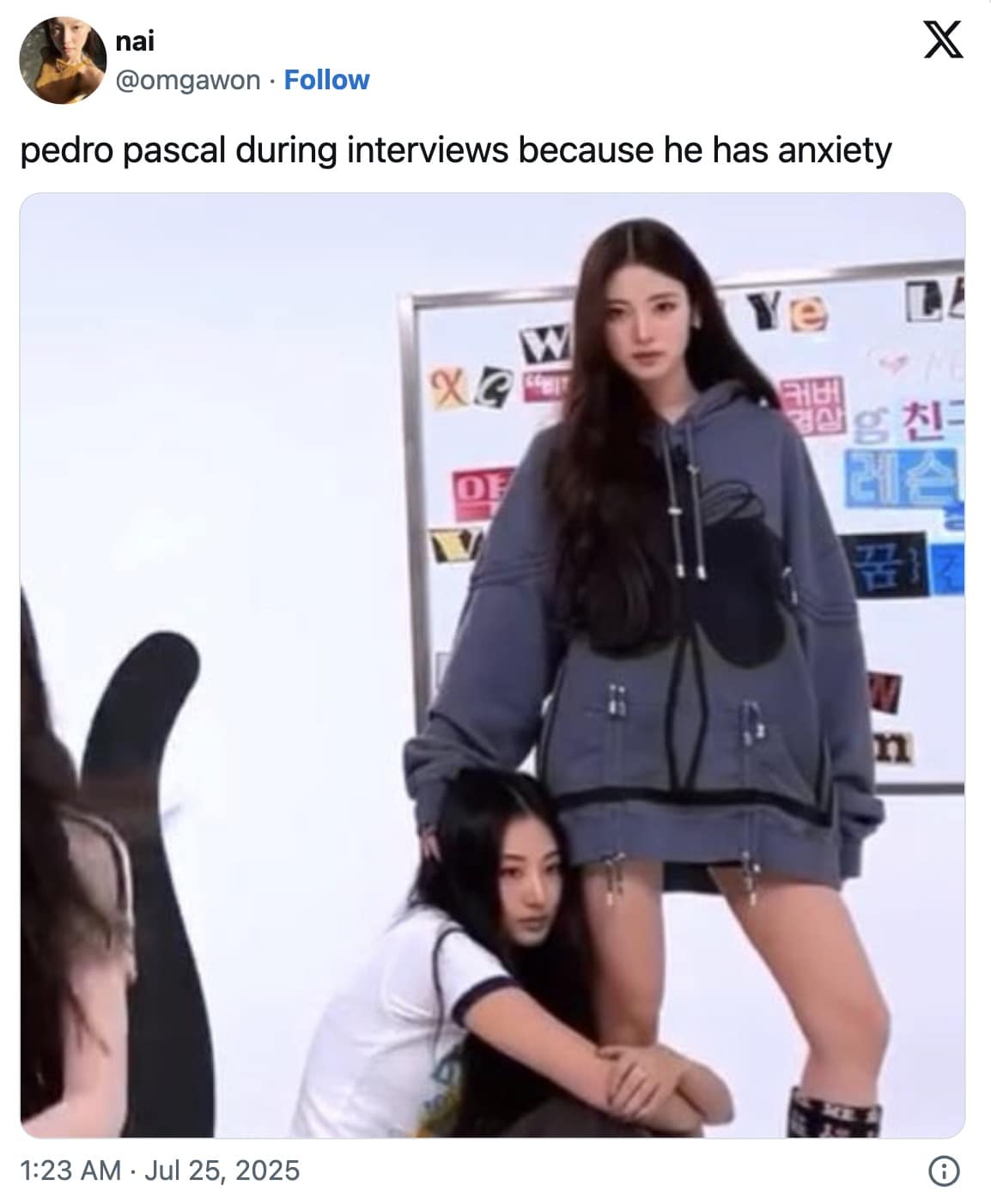 Now, Pedro Pascal memes are less “aww, protect him” and more “why does this man only get anxious when standing next to hot actresses?” Add a sprinkle of discourse about parasocial behavior, a dash of faux-psychological analysis, and boom—you’ve got yourself a cultural moment more complicated than any Marvel timeline.