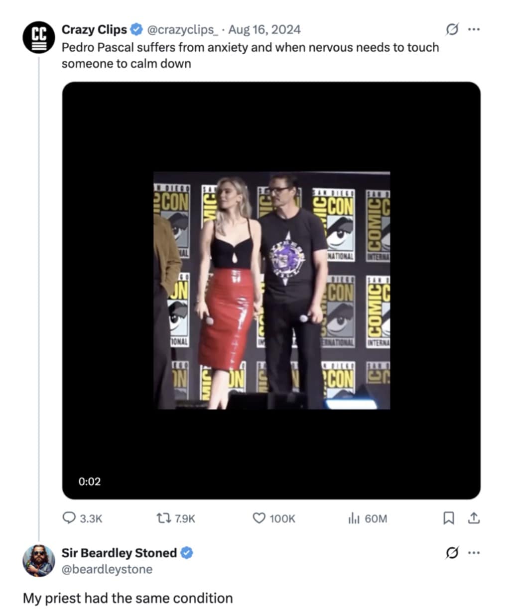Let’s rewind. In 2023, Pedro told The Last of Us co-star Bella Ramsey that touching his chest and being near someone helps calm his anxiety. Sweet, right? Vulnerable. Human. Relatable. Now fast-forward to 2025, and we’ve entered the third act of the internet cycle: gentle support → ironic admiration → meme-splosion → character trial by TikTok.