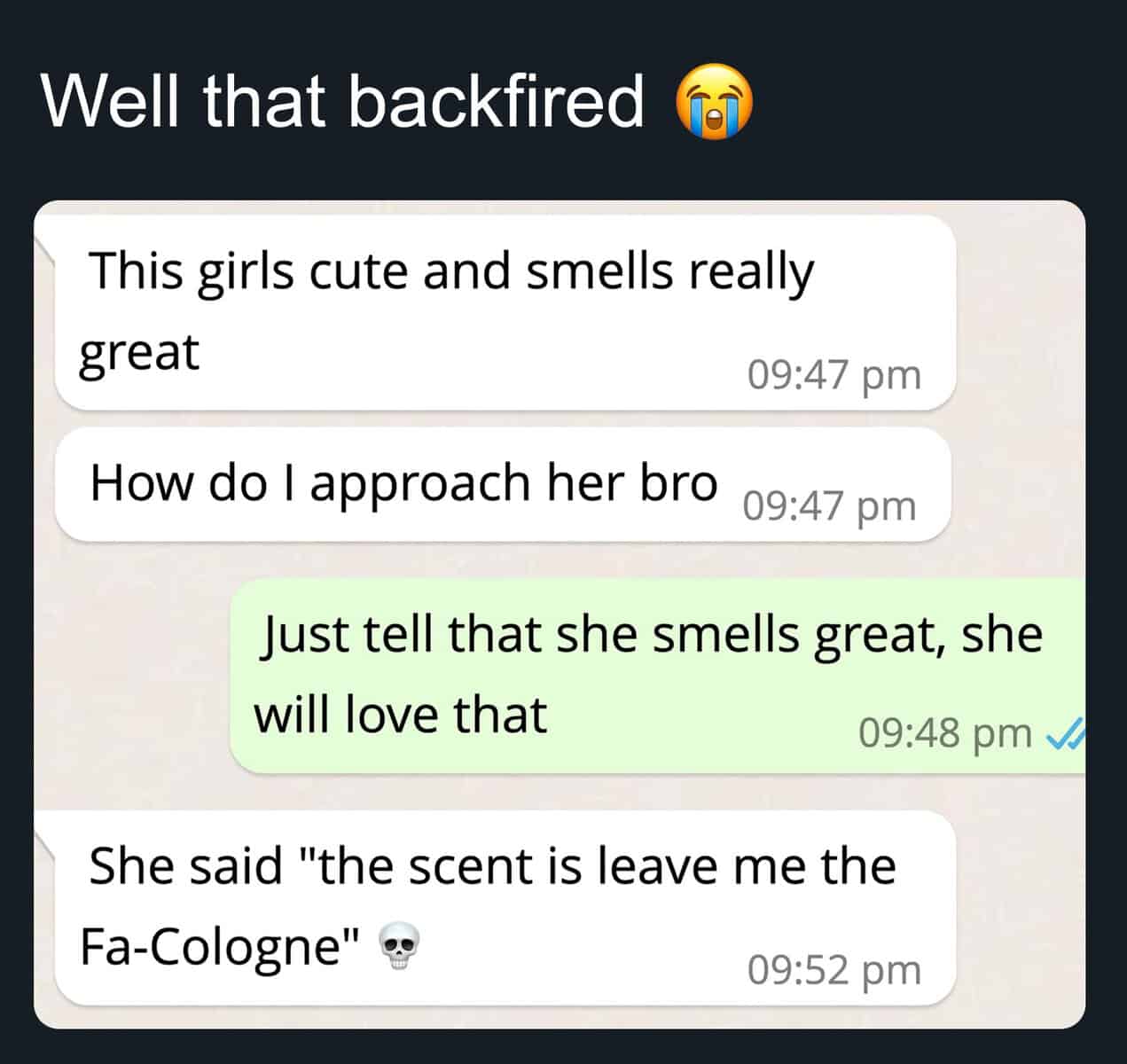 Funny text exchange shows girl breaking up without spaces