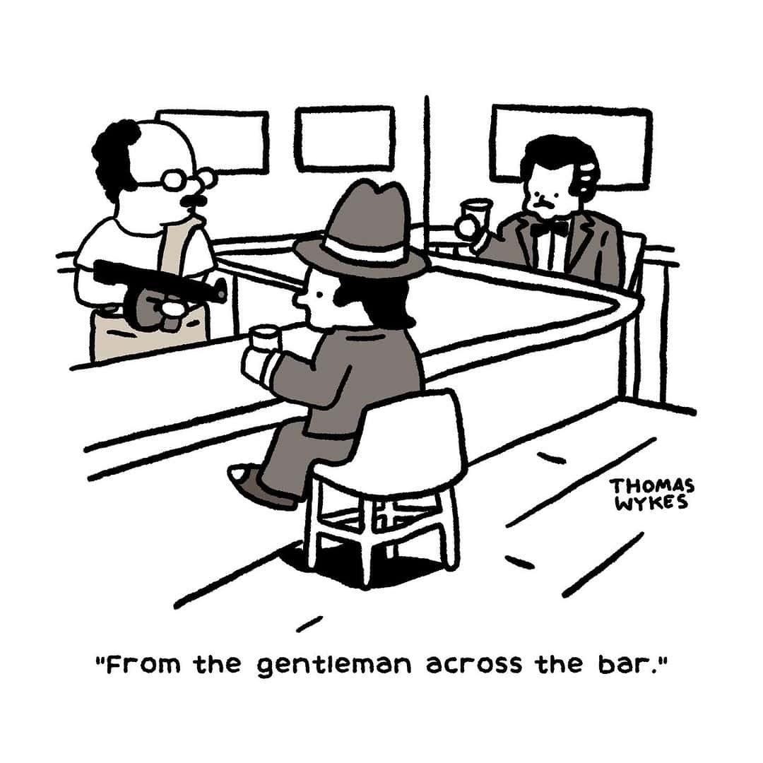 Dive into this collection of 25 dark humor comics crafted by the brilliantly twisted mind of Thomas Wykes. Each single-panel comic features sharp, biting commentary wrapped in humor that's equal parts provocative and absurdly funny. Expect topics that skirt the line of propriety, cleverly highlighting life's ironies, uncomfortable truths, and taboo subjects with ruthless comedic precision. If your sense of humor appreciates the darker side of comedy, you'll thoroughly enjoy this gallery. Just be ready to laugh—and maybe cringe a little at your own enjoyment.