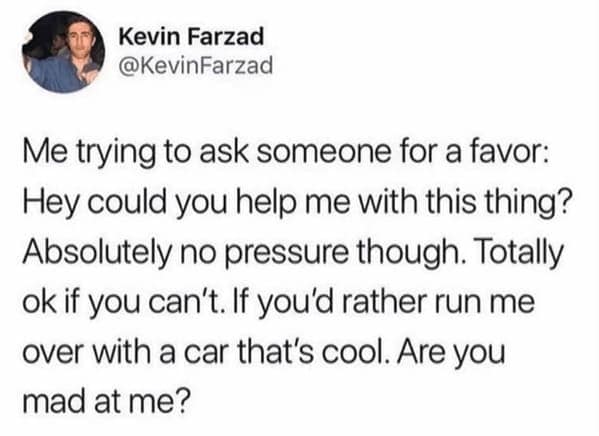 I'll be honest—I've found myself attending countless events that I had zero interest in, simply because the thought of disappointing someone seemed unbearable. Welcome to the bittersweet world of people-pleasing, where saying "yes" feels mandatory, even when your soul screams "no." If confrontation makes you break out in a cold sweat or you frequently find yourself agreeing to tasks you'd rather avoid, rest assured, you're not alone. There's a whole community of gentle souls whose kryptonite is uttering that simple two-letter word: "no." These 27 people pleaser memes perfectly capture the comedic agony of always putting others first. Prepare to laugh, sigh, and maybe even cringe at how relatable these memes are. After all, misery loves company—especially when you're too polite to turn it away.