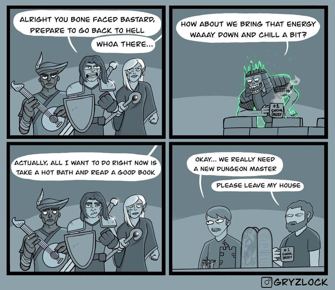 What makes dark humor comics stand out isn’t just the guts to go bleak—it’s the artistry in making the weird, morbid, and taboo somehow comforting. Gryzlock manages to pull off that perfect blend of “wow, that’s dark” and “oh, that’s actually me.” In a world obsessed with wholesome memes, these comics are a reminder that sometimes the best way to process life is with a healthy dose of twisted laughter. This kind of gallows humor has exploded online, especially after a recent viral panel about a “support group for reapers” started trending on Reddit. It’s no surprise that people are searching for more adult comics, bleak humor, and cartoon satire than ever before.
