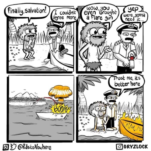 Now that you’ve survived 25 of Gryzlock’s best dark humor comics, how’s your sense of morality? If you’re like me, you probably laughed, then immediately questioned your own soul, and then laughed again. These comics prove that no topic is too grim for a punchline. There’s a strange comfort in seeing life’s darker side turned into such sharp, clever jokes. Whether you found yourself cackling or just stunned into silence, you definitely experienced comedy with real bite.
