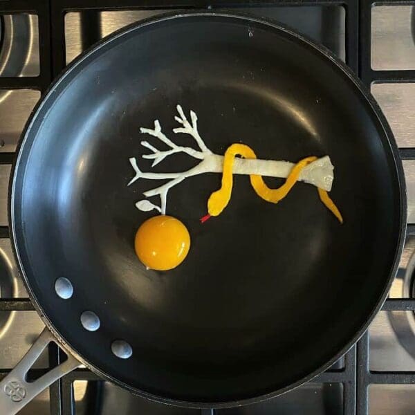 Check out these 45 astonishing pieces of fried egg art crafted by Michele Baldini. Each masterpiece is made exclusively from egg whites and yolks, demonstrating unbelievable creativity and culinary precision.