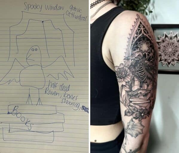 Ever bring a sketch to a tattoo artist thinking you're about to get something simple, only to end up with a piece so jaw-droppingly good you're left questioning your own creative abilities? Look, we all like to think we’re artists, sketching some cute little idea on a napkin, confidently strutting into the tattoo shop thinking, "Yep, nailed it." But then the tattoo artist takes one look, nods politely, and secretly thanks whatever tattoo god they worship for the creative freedom they're about to exercise on your poorly-drawn scribble. Tattoo artists are the unsung heroes of the creative world. They manage to decode your vague descriptions and terrible doodles, translating them into masterpieces you can proudly display on your body forever. So if you're like me, whose artistic peak was finger-painting in kindergarten, you'll appreciate the sheer talent on display here. These 30 tattoos are perfect examples of when artists took basic ideas and turned them into unforgettable pieces that actually look intentional—and thank goodness they did.